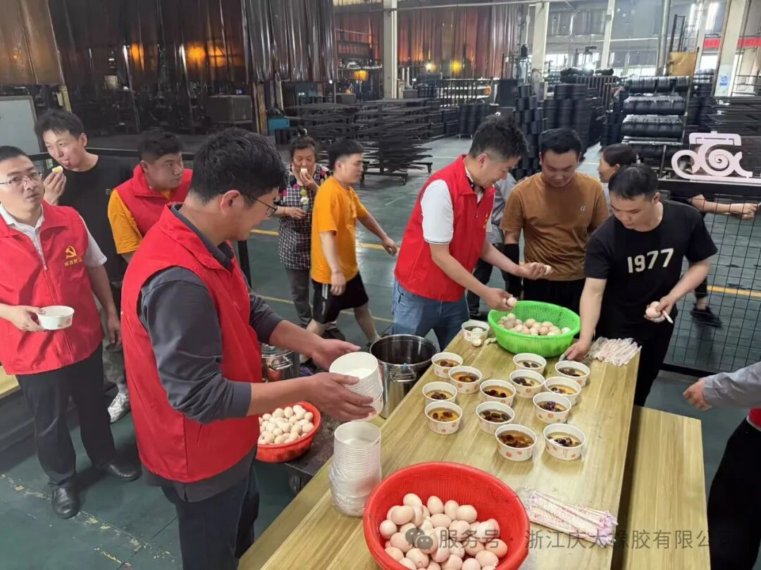 Representatives of the party branch of Zhejiang Qingda Rubber Co., Ltd. presented hand-cooked egg and red date soup and blessings for the Beginning of Summer to the office and workshop employees! I wish all employees good health and happiness!